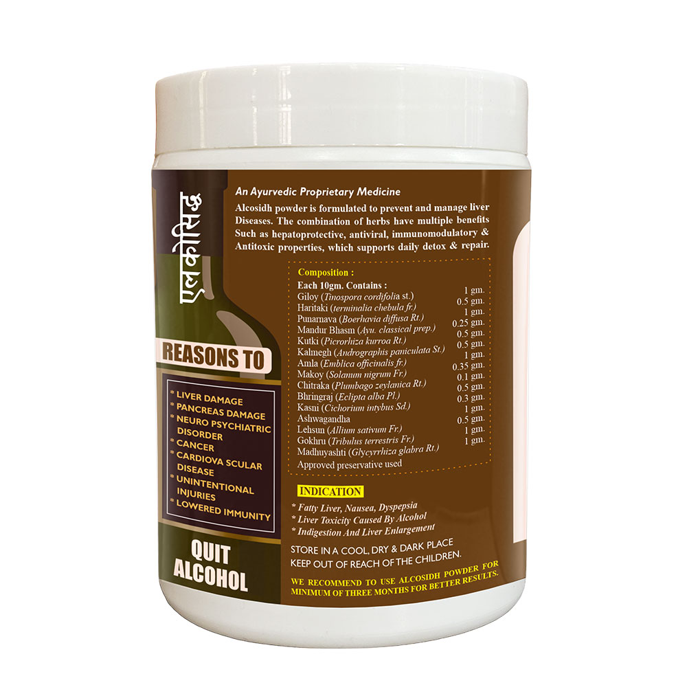 Revitalize your liver with Alcosidh, a powerful detox supplement crafted to support liver health and enhance natural detoxification. Enriched with potent herbal ingredients, Alcosid helps cleanse and rejuvenate the liver, promoting optimal function and overall wellness. alcosidh is a powerfull detox that includes herbs like ashwagandha, gokhru and giloy. It also has hepaprotectve, antiviral, immunomodulatory and antitoxic properties