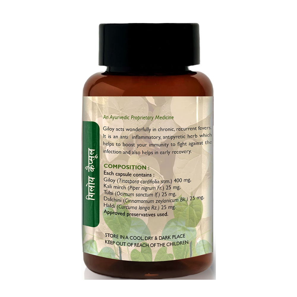 Experience the powerful health benefits of Giloy with our easy-to-take Giloy Capsules. Made from pure Giloy extract, these capsules bring the ancient wisdom of Ayurveda to your modern lifestyle. Known as “Amrita” or the “Root of Immortality,” Giloy is celebrated for its ability to enhance immunity, detoxify the body, and promote overall wellness. Each capsule delivers a potent dose of Giloy?s natural goodness, supporting your immune system, improving digestion, and helping your body fight off infections and inflammation.
