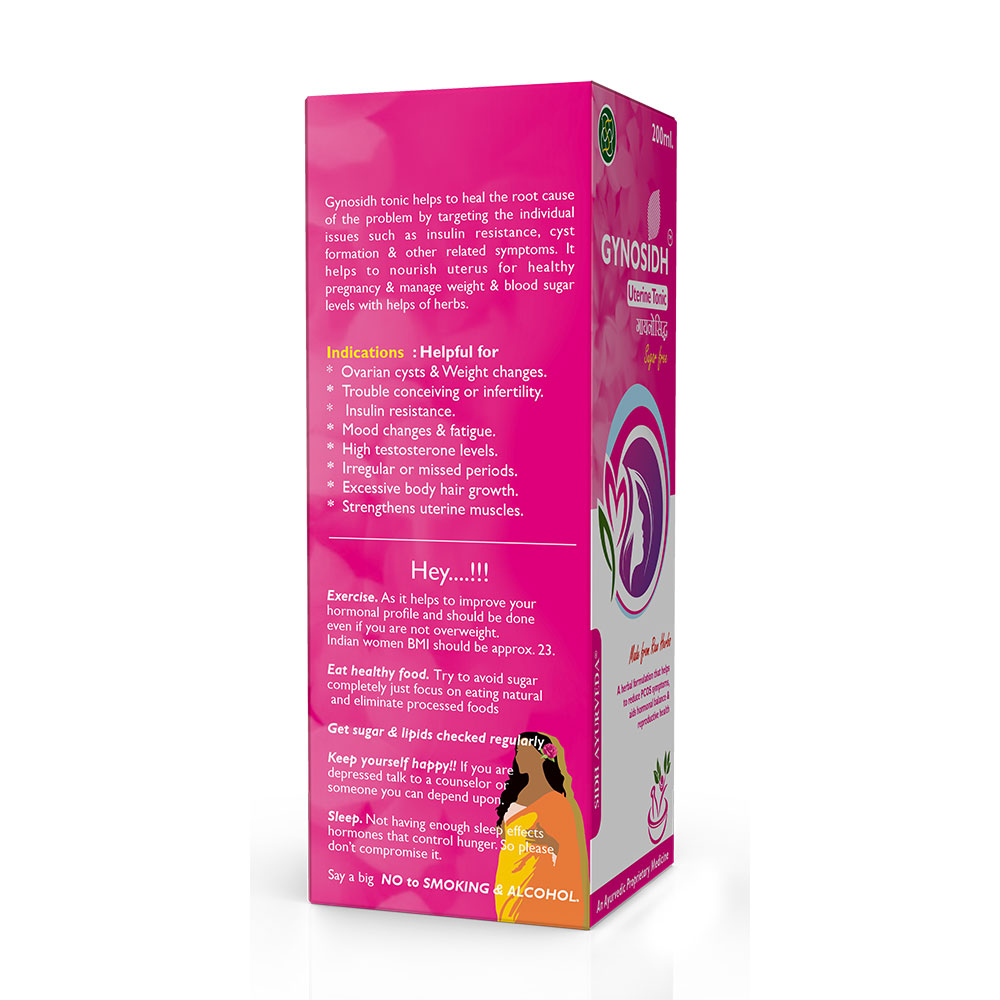 Gynosidh tonic helps to heal the root cause of the problem by targeting the individual issues such as insulin resistance, cyst formation & other related symptoms. It helps to nourish uterus for healthy pregnancy & manage weight & blood sugar levels with herbs like ashok chhal, giloy, pudina, mulethi, and triphala