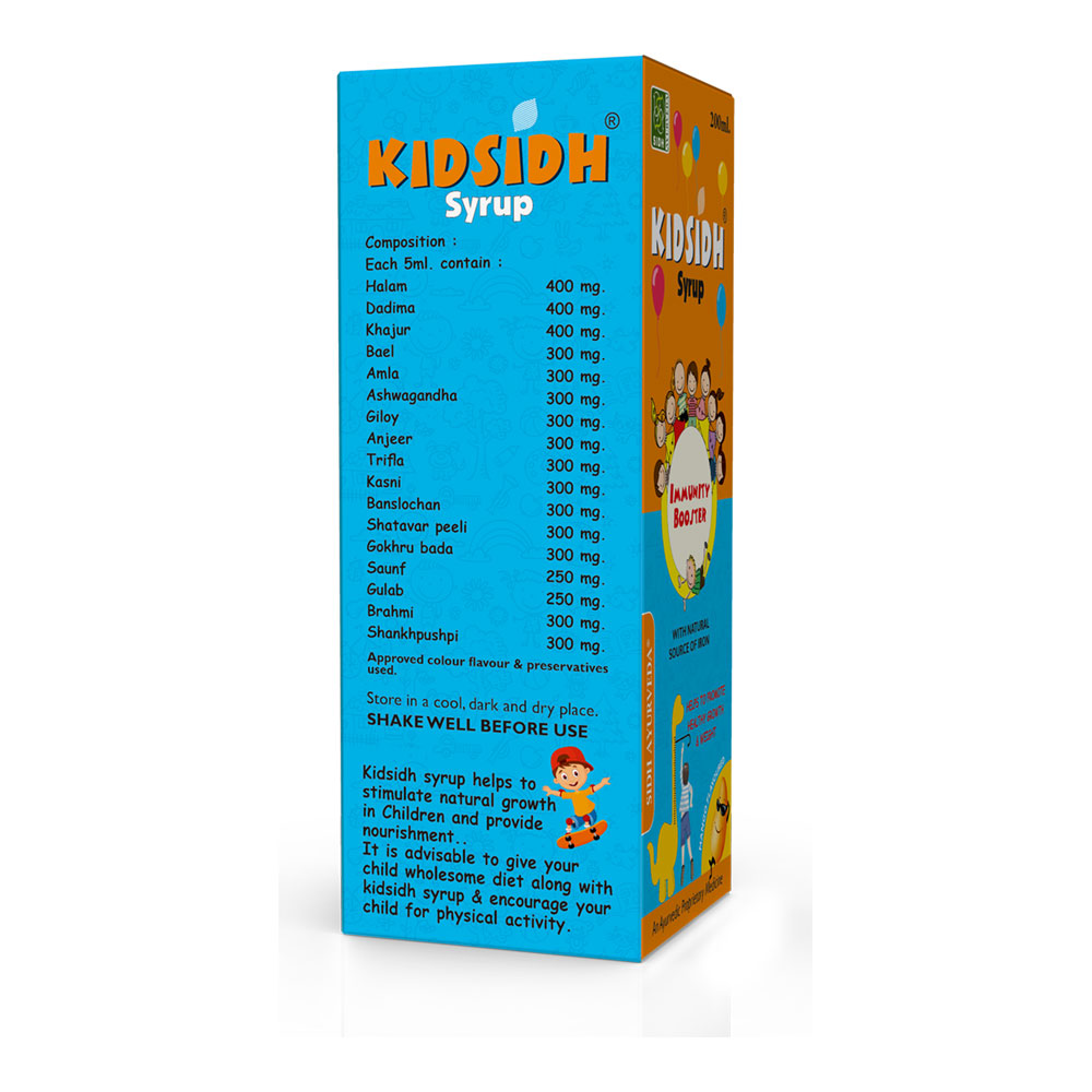 Give your child a natural boost with Kidsidh Syrup, a gentle yet effective source of iron and immunity support. Crafted with the goodness of Halam, Khajur, Amla, Anjeer, and Triphala, this syrup is designed to promote healthy growth and strong immunity in kids. Halam and Khajur provide essential iron to support energy and development, while Amla, rich in Vitamin C, enhances immune function. Anjeer and Triphala contribute additional nutrients and digestive support, making Kidsidh Syrup a well-rounded choice for your child?s daily health needs.