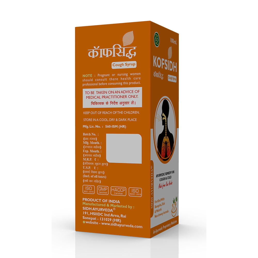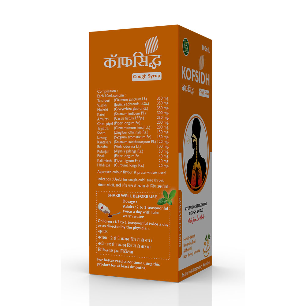 Experience natural relief from cough and respiratory discomfort with Kofsid Syrup, an Ayurvedic blend of Mulethi, Tulsi, and Vasaka. This potent syrup is formulated to soothe the throat, reduce cough, and support overall respiratory health, making it an essential remedy for cold and flu season.
