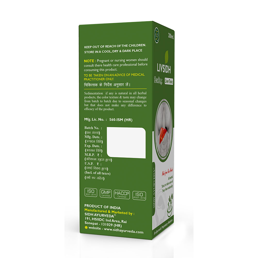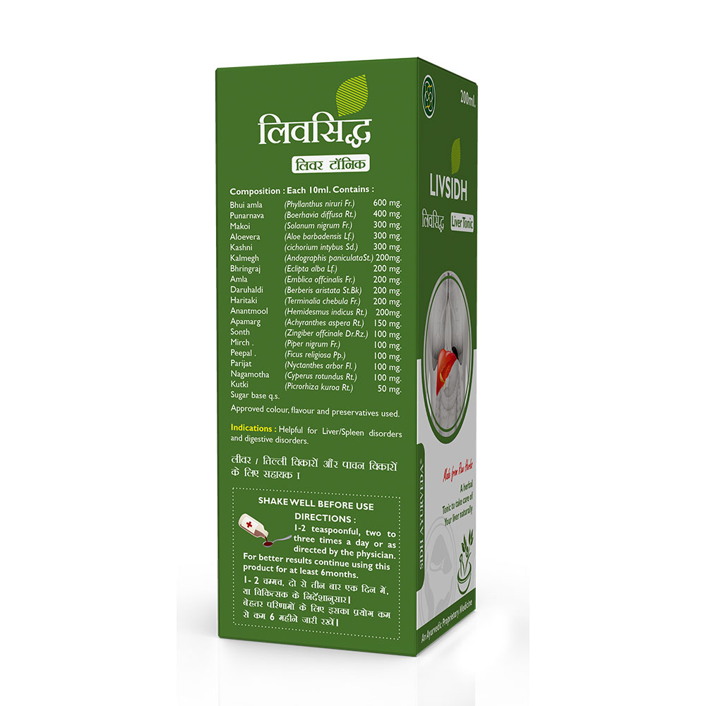 Helpful for liver/spleen disorders and improves liver functioning the livsid syrup contains herbs like giloy, bhringraj and kutki.